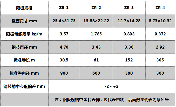 帶狀鋅合金犧牲陽極規(guī)格Specifications: